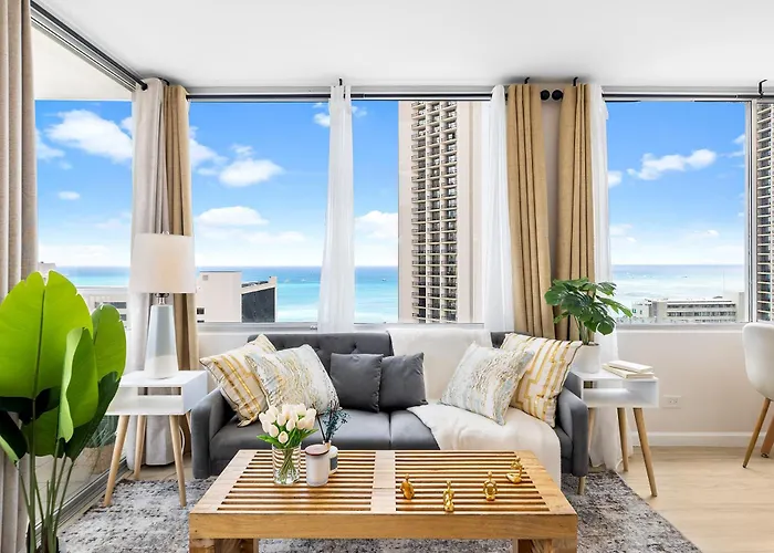 Set 15 minutes' stroll from the 42 - acre Honolulu Zoo, the 54 m² Stylish 1-Br Condo With Breathtaking Ocean Views comprises a balcony and a dressing room overlooking the pool. Situated close to Ala Wai Golf Course, this 1-bedroom apartment offers a sunny patio where guests can relax and enjoy the city view.